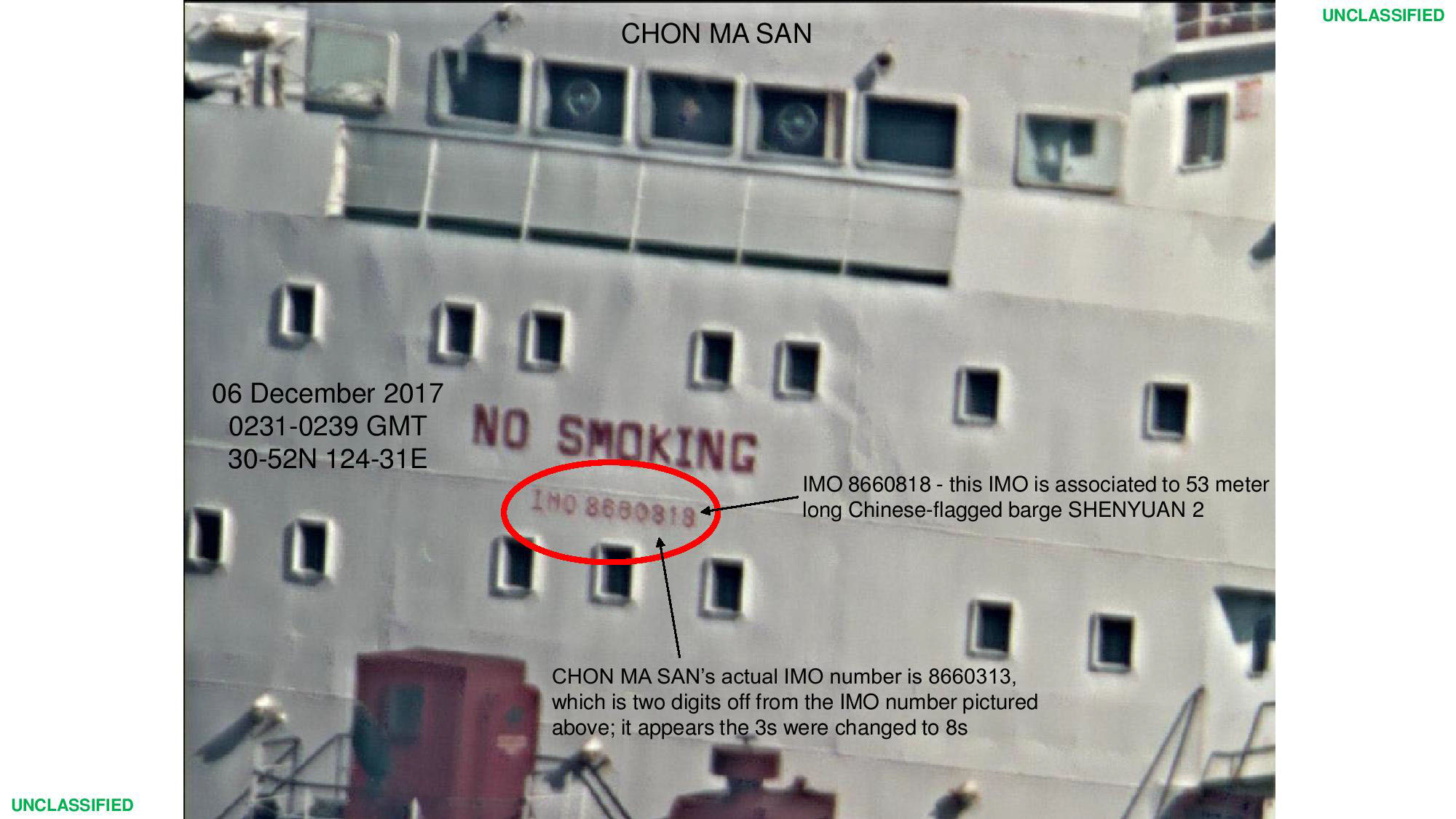 02/23/2018 North Korean Vessel Kum Un San 3 - Image 1Please click on the image to enlarge. North Korean Vessel Kum Un San 3 - Image 2Please click on the image to enlarge. North Korean Vessel Chon Ma San - Image 3Please click on the image to enlarge. North Korean Vessel Chon Ma San - Image 4Please click on the image to enlarge.